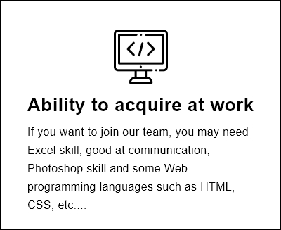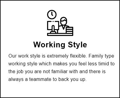 Hi, my name is Ywet Nu Wai. My main responsibility is to operate the tasks requested from head-quarter of Japan and to give the training the workflow of WEB team when new members are joined. I start joined in 2019 December.