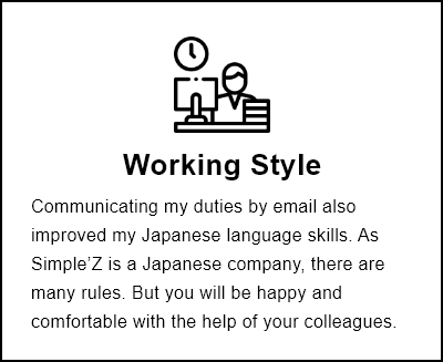 Another reason I chose this company was because it was a Japanese company and I wanted to improve my Japanese language skill.