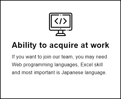 My main responsibility is to operate the tasks requested from head-quarter of Japan and to give the training the workflow of WEB team when new members are joined.
