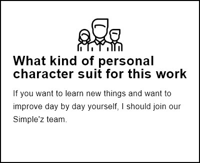 I am Aye Swant from the EC Consulting Company.I've been with Simple'z Co.,Ltd since 2019.We are a Japanese IT company in Myanmar that have been in business for 6 years ago