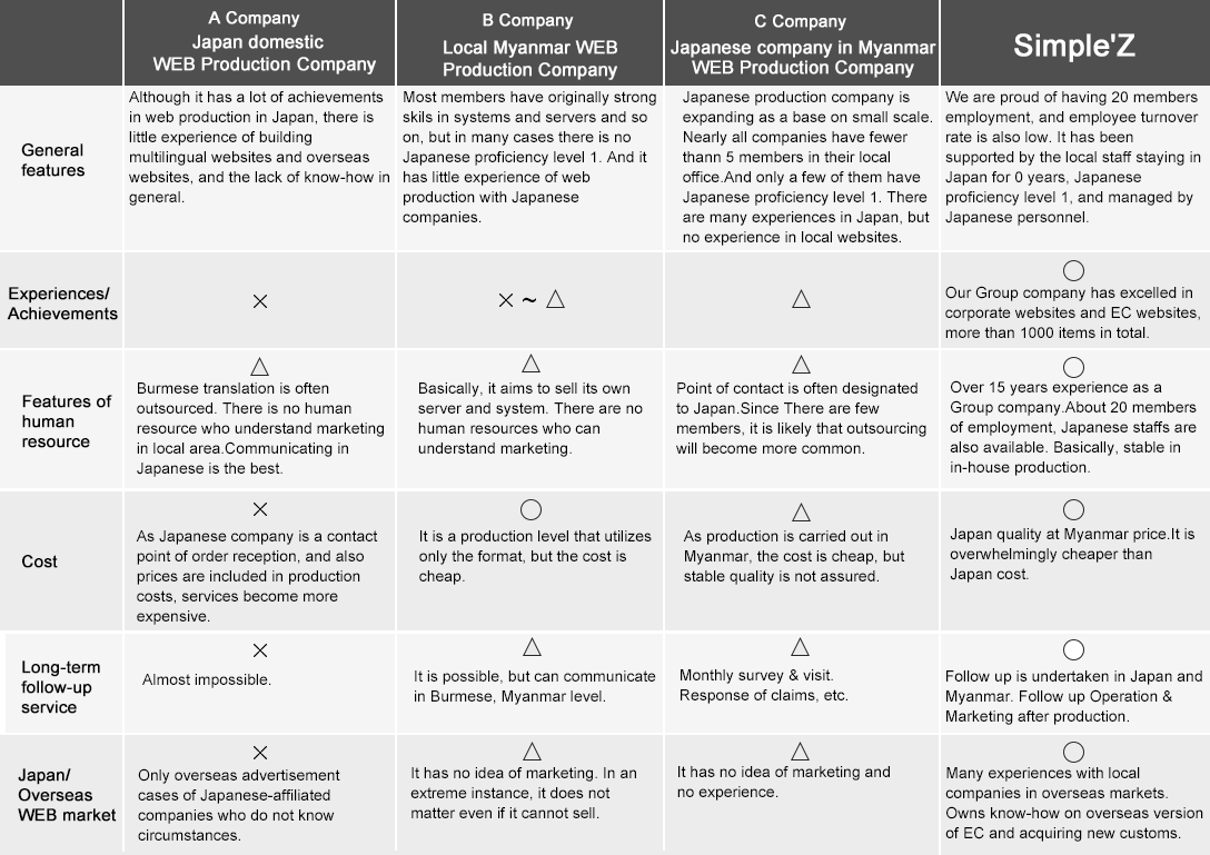 WEB通販を8年以上行っており、現在は、楽天、ヤフー、アマゾンと大手モールで販売を行っております。安定した人材確保の為、制作部隊をミャンマーの子会社「シンプルズ」へ移すことにいたしました。すべての店舗の商品登録やHP修正はシンプルズ側が行っております。日本側は販売戦略を考え、シンプルズ側は、スピーディーな商品登録やHP制作といった事が可能になりました。